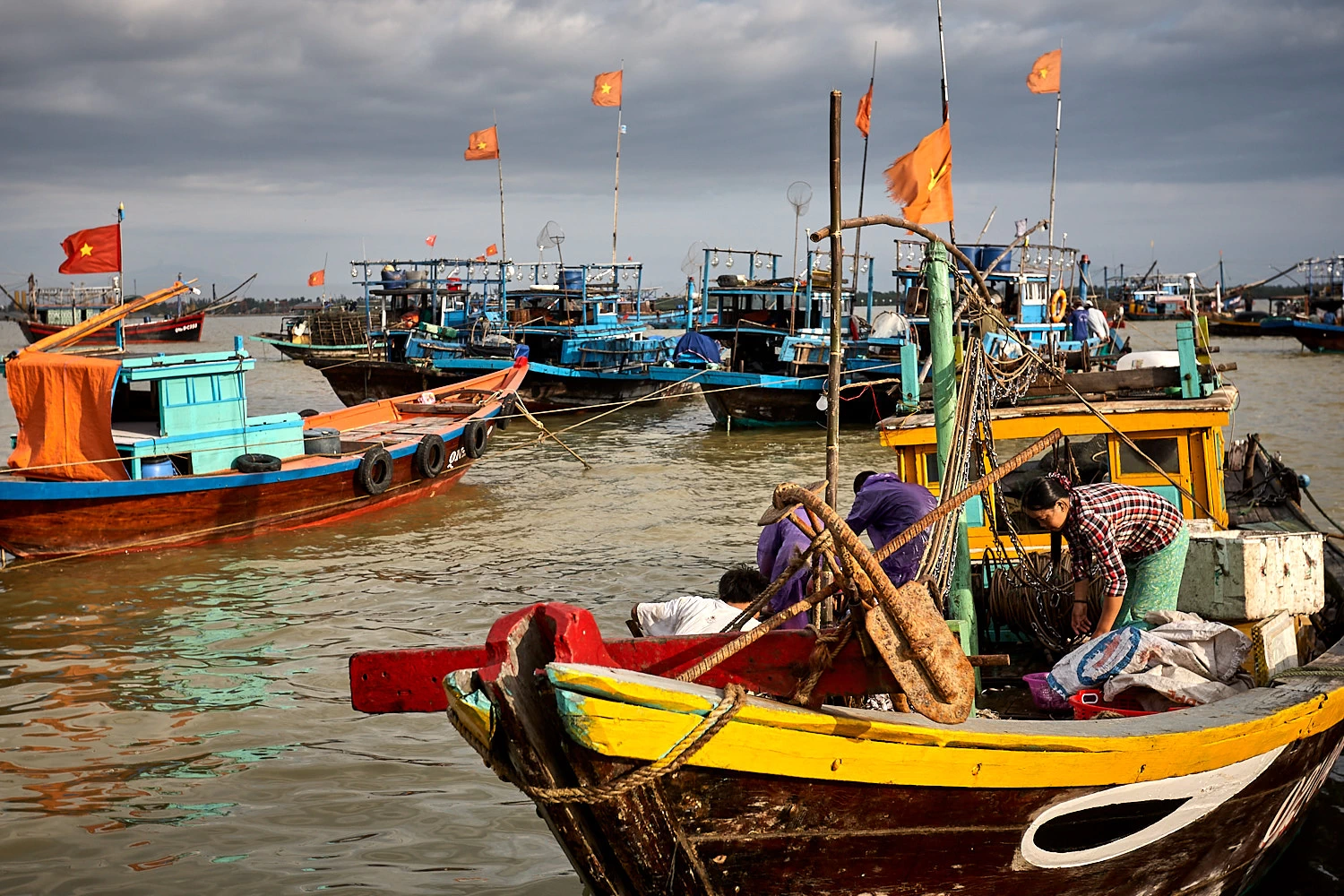 Just before sunrise, the fishing boats arrive. The air carries the mixed smell of salt, fuel, and the night’s catch.