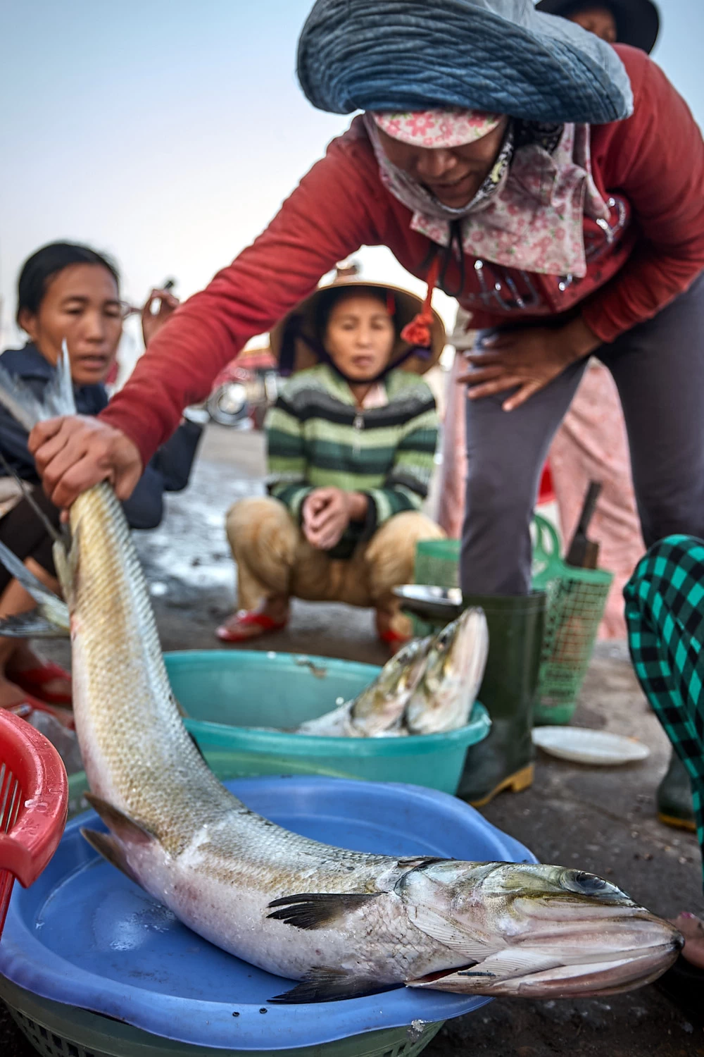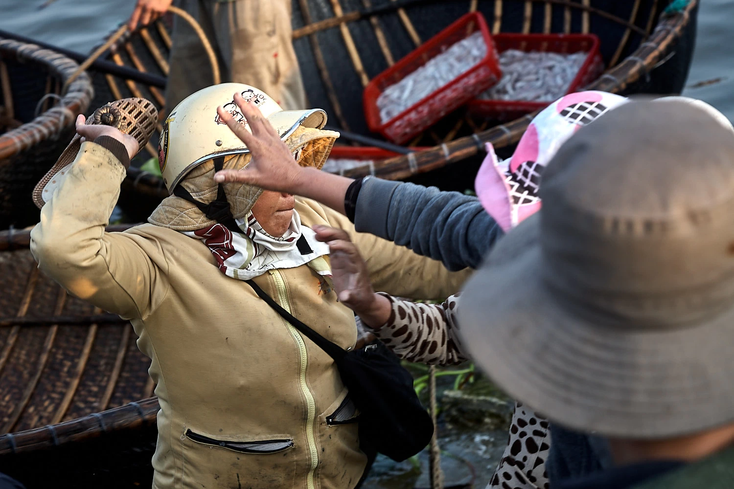 Once the catch reaches the riverbanks, mayhem begins. The screaming is deafening. Hands point, weigh, refuse, insist. Bargaining is relentless, and at times fights break out.